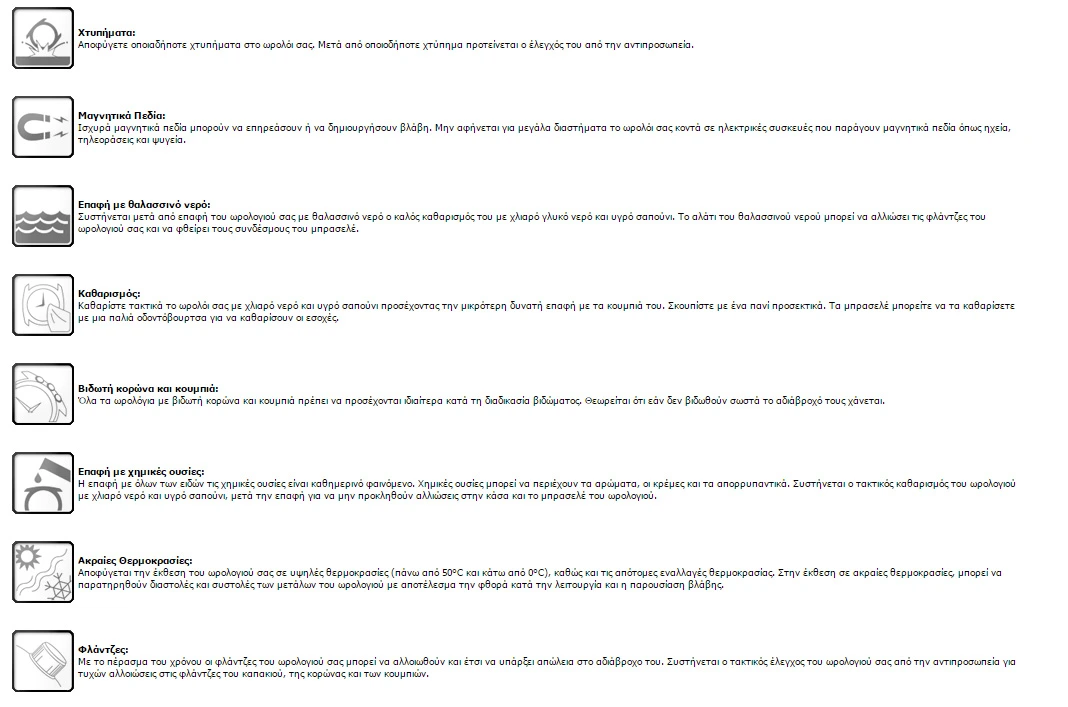 * Μην ξεχνάτε ότι ακόμη και τα αδιάβροχα ρολόγια δεν πρέπει ΠΟΤΕ να μπαίνουν σε ζεστό/καυτό νερό!