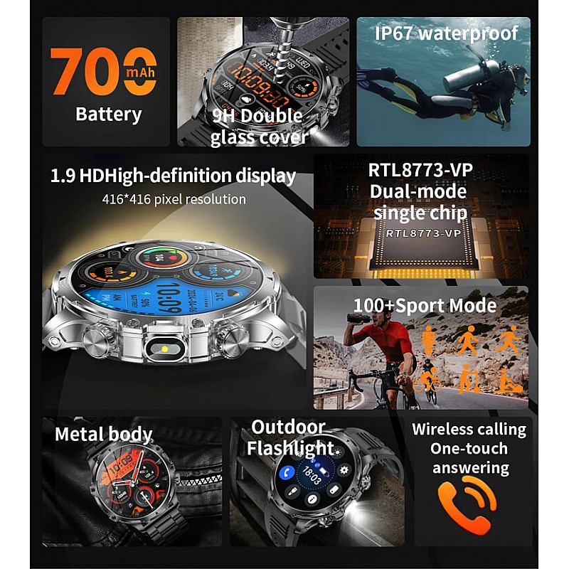 Ανακαλύψτε το απόλυτο Smartwatch AK75 που συνδυάζει στυλ και τεχνολογία! Με την εντυπωσιακή IPS LCD οθόνη 1,9" Touch Screen και ανάλυση 480x480, απολαμβάνετε κρυστάλλινη εικόνα και άμεση αλληλεπίδραση. Επιλέξτε από 100 watchfaces για να προσαρμόσετε το ρολόι στο προσωπικό σας γούστο.