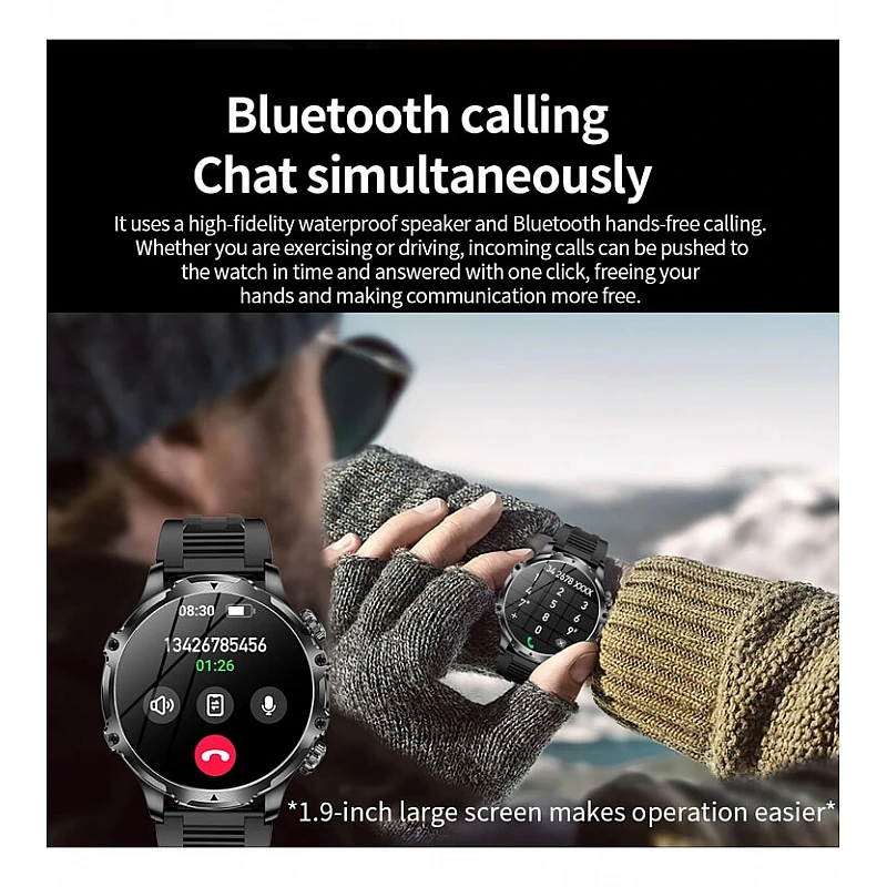 Ανακαλύψτε το απόλυτο Smartwatch AK75 που συνδυάζει στυλ και τεχνολογία! Με την εντυπωσιακή IPS LCD οθόνη 1,9" Touch Screen και ανάλυση 480x480, απολαμβάνετε κρυστάλλινη εικόνα και άμεση αλληλεπίδραση. Επιλέξτε από 100 watchfaces για να προσαρμόσετε το ρολόι στο προσωπικό σας γούστο.